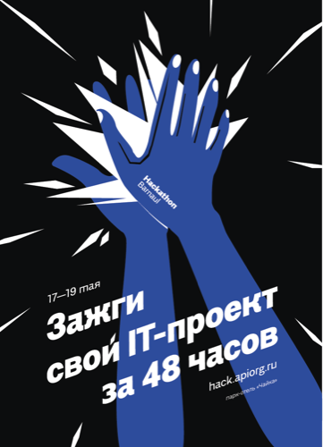 Разработать фирменный стиль для IT-хакатона. В 2019 году мы сделали новые плакаты и обновили стикерпак, построив вижуалы вокруг нового слогана ивента «дай пять».