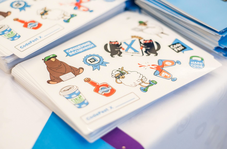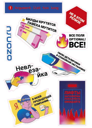 Разработать брендированные стикерпаки Ozon для раздачи на IT-конференциях.