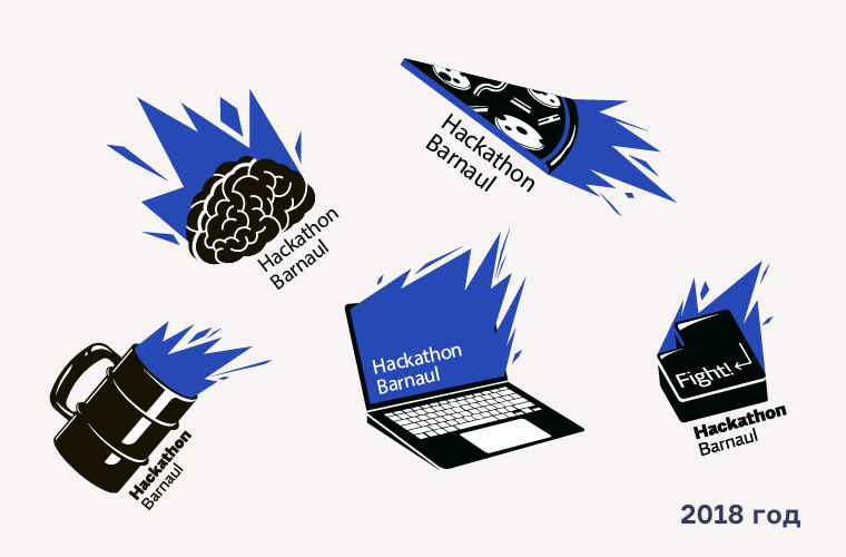 Hackathon Barnaul — мероприятие, которое на момент создания фирменного стиля, с успехом проводилось уже в четвертый раз. При разработке айдентики мы взяли выражение «огонь» как центральную метафору, electric blue в качестве основного цвета и кеки айтишной тусовки.